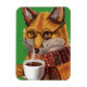 This fox features a fox dressed in eyeglasses and knit scarf drinking a hot cup of tea.