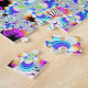 This puzzle features my fractal I call "Daydreams" with pink, purple, blue, aqua, yellow, orange, white and black colors. Makes a great gift for fractal art lovers.