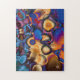 This puzzle features my fractal "Memories". This abstract image has blue, brown, purple, orange and teal colours.