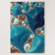 Fractal art stingrays in teal and aqua blue swim above a mosais sea floor. Mathematics-based digital art by Susan Maxwell Schmidt.