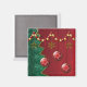 Layers of fractals make up this stylised Christmas design. A muted red backdrop, a spiky green tree, gold stars and snowflakes hanging from a strand of red and gold beads, and three red balls with a twirling gold design hanging in front.
