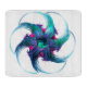 Swirls of pink, aqua, blue and purple with a white background make up this beautiful abstract fractal image. Now imagine it spinning around.