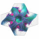 Swirls of pink, aqua, blue and purple with a white background make up this beautiful abstract fractal image. Now imagine it spinning around.