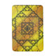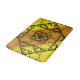 Three styles of hand-drawn fractals, including Sierpinski triangles, Apollonian gaskets, and a similarly themed square design, make up the layers of this geometric mandala, overlaid onto a bright yellow and orange gradient.