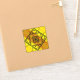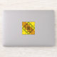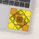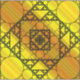 Three styles of hand-drawn fractals, including Sierpinski triangles, Apollonian gaskets, and a similarly themed square design, make up the layers of this geometric mandala, overlaid onto a bright yellow and orange gradient.