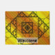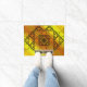 Three styles of hand-drawn fractals, including Sierpinski triangles, Apollonian gaskets, and a similarly themed square design, make up the layers of this geometric mandala, overlaid onto a bright yellow and orange gradient.