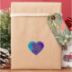 Colourful, cheerful fractal image printed on a heart sticker in a glossy finish.