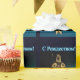A brown-toned fractal image suggesting a highly-stylised Inuit hunter, wearing traditional fur clothing, holding a harpoon with an ivory head. The image is superimposed on a background depicting the dark polar winter. Cyrillic (Russian) text reading, "С Рождеством" (S Rozhdestvom/Merry Christmas) also appears in glowing blue and white