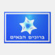 Features a white fractal Star of David on a blue background along with Hebrew text reading "B'ruchim Haba'im" (ברוכים הבאים - welcome).
