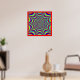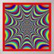 Looking at this image clockwise or counterclockwise gives the perception of motion. Changing the distance between the eyes and the image back and forth, while watching the centre of the image, gives the perception of expansion of colours. You could view all of my images with optical effects at : http://www.zazzle.com/mohsenart/gifts?cg=196904589798277291