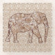 Mixed media digital graphic of an elephant against an arabesque tiled background glass coaster - Fractal swirl pattern in shades of light to deep taupe and cream accented with chocolate brown