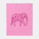 Fleece blanket in a digital graphic of a richly embellished elephant, in a flower pattern in shades of pink, from pale pink to deep fuchsia, against a medium pink background
