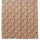 Fractal swirl pattern in shades of chocolate brown, mocha, tan and cream, accented with red shower curtain