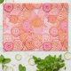 Fractal swirl pattern in shades of coral pink, coral orange, red, peach and pink, accented with maroon