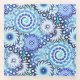 Fractal swirl pattern in shades of pale blue to navy, accented with white glass coasters