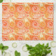 Fractal swirl pattern, shades of coral orange tea towel