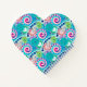Heart shaped notebook in a fractal swirl pattern in shades of blue, pink, green and turquoise, accented with white, with personalised monogram
