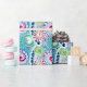 Fractal swirl pattern, turquoise, pink, multi wrapping paper