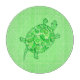 Mixed media digital graphic of a turtle in a fractal pinwheel pattern against an arabesque tiled background - shades of green ranging from pastel lime to deep emerald