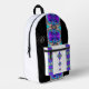 On this chic Backpack, style meets functionality with a touch of personalisation. Adorned with mesmerising fractal patterns in vivid blue, light gold, and pink-purple hues against a sleek black and white background, this backpack is a true fashion statement.