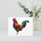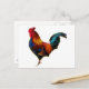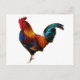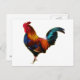 A lively image of a leghorn rooster, in vibrant gold, orange, red, blue, green and black, created in a fractal style.