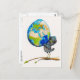Cute and creative art showing a little blue bird on the edge of a tree branch holding a bird egg which represents the planet Earth. Careful now, don't drop it! Artist: Gail Anne Howard