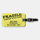 Luggage or bag tag in yellow with the text, "Fragile, Handle with Care".