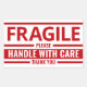 Ensure your packages are treated with care using these bold and clear "Fragile Label Red White Shipping Warning Sticker", shipping labels. Designed in a vibrant red and white colour for high visibility with the message "Fragile. Please Handle With Care. Thank you" printed in bold, easy-to-read font, these stickers will gently remind shipping personnel to handle your items cautiously.