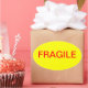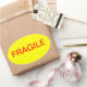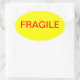These yellow oval shipping labels have "Fragile" in large red font. This design can be purchased as-is or you can use it as a template to make your own shipping label design. This label can have any warning message desired.