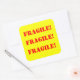 These square shipping labels have a yellow background with "FRAGILE!". These stickers are coloured for high visibility. Just peel and stick. These labels are perfect for large and small businesses. This design can be purchased as is or you can use it as a template to make your own unique design. Other shipping/warning labels and designs are offered.