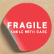 A simple typographic design with sample custom text "Fragile handle with care" in modern typography in white on a red background.