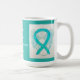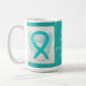 Fragile X Syndrome uses a teal awareness ribbon to show support for its awareness. This custom mug features teal awareness ribbon guardian angel art paintings with the message "I Hope and Support Fragile X Syndrome Awareness!" The custom teal awareness guardian angel ribbon art picture coffee cups or mugs can be customised with personalised messages to make great cause mugs for awareness fundraisers, awareness cup gifts, or other special events or cause support occasions. Make your own customised words for a personal message of hope and support to share!