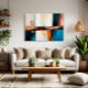 This abstract piece explores the tension between vibrant colours and soft shapes, evoking a horizon shattered by emotions and memories. Blues, oranges, and reds intertwine in fluid strokes, creating a sense of movement and introspection, as if the viewer is diving into a fragmented dream.