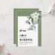 This exquisite wedding invitation showcases a stunning white frame adorned with delicate white flowers and eucalyptus branches, elegantly placed in the upper right corner. The sage green borders add a touch of sophistication to the design, while the bold typography of the minimal text creates a modern and stylish look. The back of the invitation is beautifully coloured in a soothing shade of sage green, completing the overall elegant and timeless aesthetic.