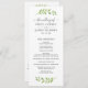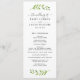 This elegant style wedding ceremony program design features a foliage frame of green watercolor painted branches with leaves that accents this modern and minimal nature-inspired typography design. Perfect for a spring or summer event. Personalise the stylish dark grey text on both sides of the card with your custom ceremony, wedding party, and thank you message wording.