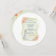 - A scalloped-edge white frame with gold geometric lines and delicate floral accents in peach, blush, and greenery.