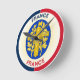 Very pleasant design showing the coat of arms of France within a circle shape made of the national colours.
