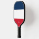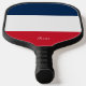 Display your national pride on the pickleball court with the bleu, blanc, et rouge of the flag of France. One side of the paddle reflects the order of the flag's colours when held horizontally in the right hand, while the other side displays the order when held in the same position in the left hand. Personalise it by inserting your own name in a French font, in the required field. Vive la France!