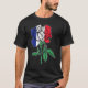 I give wanted to give this a 4 instead of a 5 because these Basic DARK T0shirts run unexpectedly SLIM or Narrow. Which is great if you do not have a potbelly, but I have a paunch. It isn't the shirt's fault that I've got a beer belly. The design and shirt itself is a quality cotton shirt. The color is more of a deep purple, but still a very pretty color. The Basic DARK T-shirts run a bit SLIMMER than the Basic Ts. The neck is a fraction narrower (or seems to be narrower) also. I'm a paunchy middle-aged woman and my neck is 12 inches (31cm) thick and the neckline fell about the same as in the photo of the man, and I had the desire to tug it a bit. So if you're a thick necked man or like loose shirts, be aware these are slimmer shirts. Once I get rid of my lockdown paunch it'll look great. The shirt washed well in cold water with no apparent bleeding. We don't have a dryer, so it hung dry. Did not shrink. Love the colors and the design. The design looks smaller on my shirt than it does on the model on-line. But still, it looks good on the shirt. The printing looks as it does on the model, just the size seems fractionally smaller. Washed garment in cold water, hung dry and design appeared unaffected.