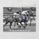 Horse racing's greatest moment when two amazing thoroughbreds with their rippling muscles battle to the finish line in a photo finish noses apart at historic Belmont Park. In this race, VALHALLA on the outside got the win in the blue SADDLECLOTH in this black and whit photo.