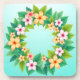 A graceful arrangement of orange and pink frangipani flowers, accented with lush green leaves. Set against a soothing turquoise gradient backdrop, this design radiates tropical charm and serene elegance.