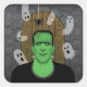 This is an image of Frankenstein emotionally unfazed by Ghosts within the castle. There are three variants of this image, black and white, Green/black/white. This is the colour version.