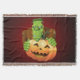 Frankenstein Monster Cartoon with Pumpkin Throw Blanket