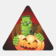 Frankenstein Monster Cartoon with Pumpkin Triangle Sticker