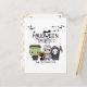 Summon your guests to an unforgettable bash with this whimsical, spooky Halloween party invitation postcard! Perfect for a haunted house rave, costume party extravaganza, or kid friendly spooky soiree, this design captures the eerie magic of the season. This design includes a cute little scare squad featuring a Frankenstein, a Mummy, a Grim Reaper with his sickle, and cute black cat wearing a pumpkin hat. A group of scary bats are flying overhead and spooky spiders are busy spinning cobwebs and crawling on the sign “Halloween Party”. It’s the perfect blend of playful and spine-chilling!