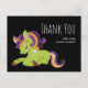 Thank you postcard with an image of a Frankenstein unicorn. Purple and green colours. Spooky cute.