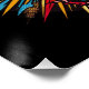 A vibrant depiction of a monster with an open mouth and raised hands is set against an explosive burst of colourful streaks and dots. The dynamic composition conveys excitement and energy.