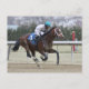 Winter racing at historic Aqueduct Racetrack, home of the prestigious Wood Memorial stakes. Jockey JOSE LEZCANO is in full control as he powers to the lead with his powerful black colt Frannkienjmme. Wearing the white and light blue house silks, the rider is on his way to victory.