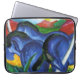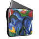 Franz Marc Blue Horses laptop sleeve. Oil on canvas from 1911. Franz Marc painted some of the most exquisite animal paintings of the twentieth century. His blue horses are some of the most popular paintings in his catalogue. Blue Horses is a charming horse painting featuring blue horses standing amongst hills of red, blue and yellow. A pretty gift for fans of Franz Marc, blue horses, horse paintings, and expressionism.