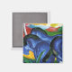 Franz Marc Blue Horses magnet. Oil on canvas from 1911. Franz Marc painted some of the most exquisite animal paintings of the twentieth century. His blue horses are some of the most popular paintings in his catalogue. Blue Horses is a charming horse painting featuring blue horses standing amongst hills of red, blue and yellow. A pretty gift for fans of Franz Marc, blue horses, horse paintings, and expressionism.